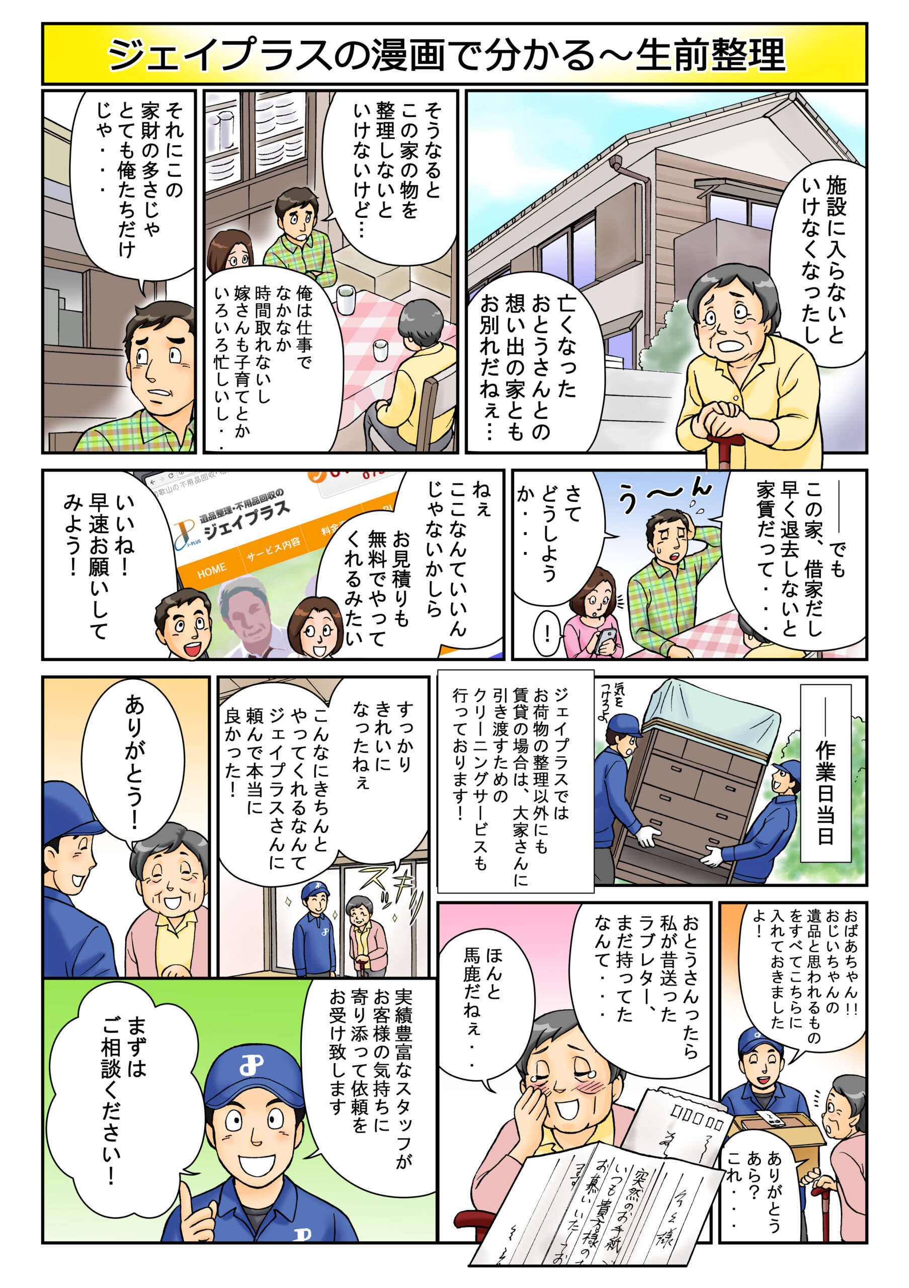 「単身で暮らしている」「自分が他界した後、財産や身の回りのものはどうしたらいいのだろう」「要らないものを捨てたいけど体力がない」そんなお悩みをお持ちの方はジェイプラスにお任せください。